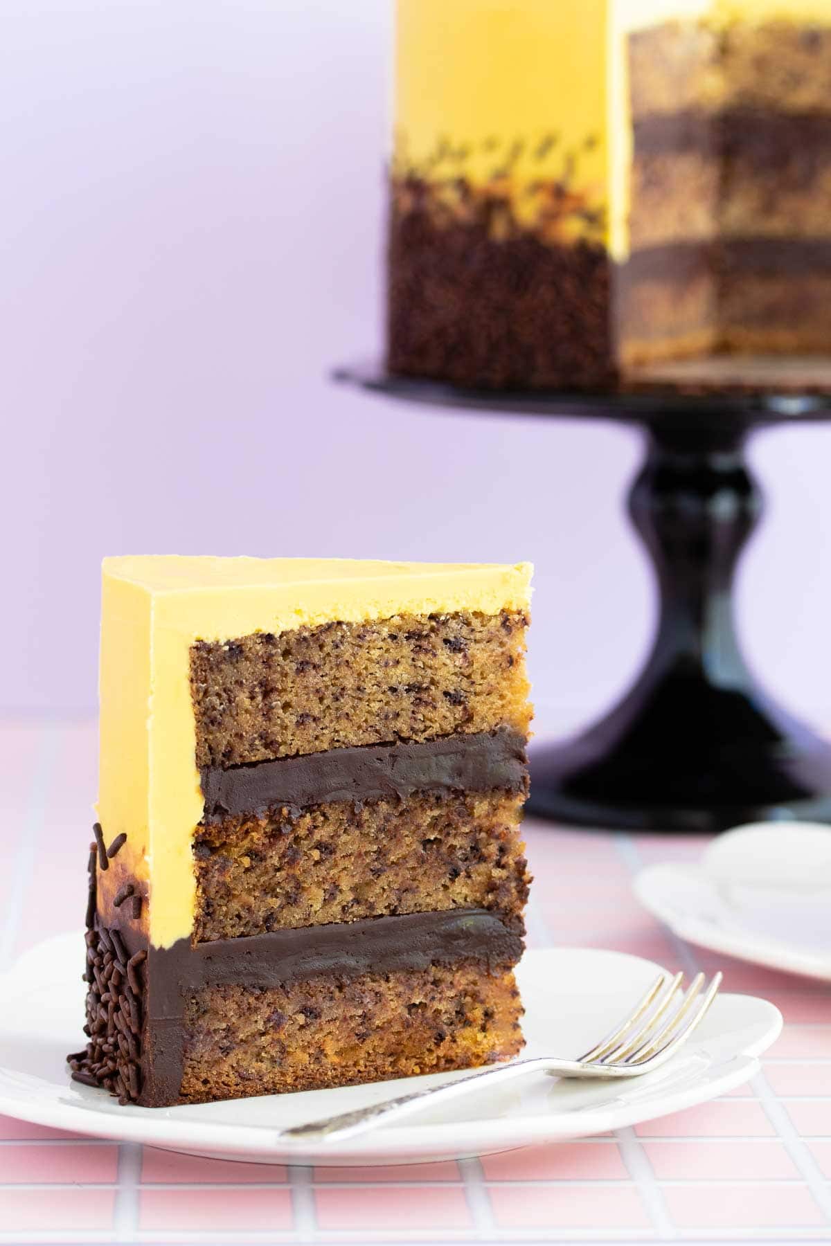 This rich, moist gluten free banana cake keeps well and improves in flavour over time.Iced with your choice of buttercream, ganache or fondant, this cake is great for cake decorating.